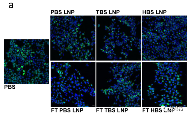 在- 20℃下保存三周后,將不同緩沖溶液中的LNPs在室溫下解凍30分鐘,立即用于研究。