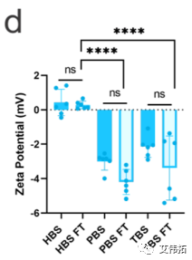 HEPES和Tris中LNPs的PDI在凍融前后基本保持一致,而PBS中LNPs在解凍后PDI增加了3倍(上圖b)。FT后Zeta電位也略有下降(上圖d)。