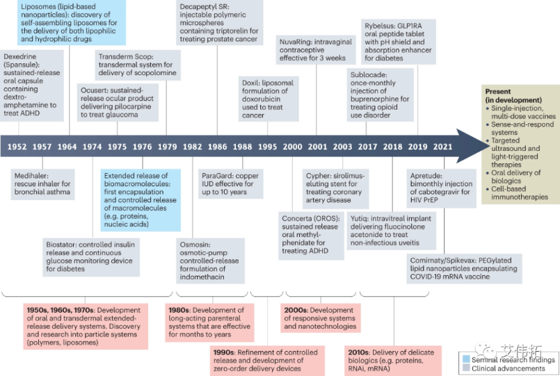 提高依從性被認(rèn)為是改善普通人群健康的*有影響力和*具成本效益的策略之一,但它并沒有像其他改善健康的方法那樣受到同樣的關(guān)注。據(jù)估計,在美國參加醫(yī)療保險和醫(yī)療補助的個人中,藥物利用率*增加1%,就會導(dǎo)致國家醫(yī)療保健支出減少3億美元。傳統(tǒng)的衛(wèi)生保健提供者通過教育和賦予患者權(quán)力的策略來提高依從性,產(chǎn)生了不一致且往往令人失望的結(jié)果。這些干預(yù)措施往往過于復(fù)雜,需要衛(wèi)生保健基礎(chǔ)設(shè)施或某種程度的個性化,無法大規(guī)模具有成本效益。藥物輸送系統(tǒng)(DDS)是有前途的技術(shù)替代方案,可以減輕對現(xiàn)實世界依從性的物流因素的負(fù)面影響。DDS是用于調(diào)節(jié)藥物在體內(nèi)隨時間釋放或?qū)⑺幬锇邢蛱囟ńM織或細(xì)胞類型的配方,系統(tǒng)或技術(shù)。**個DDS,一種輸送右旋***的緩釋系統(tǒng),于1952年獲得批準(zhǔn)。下圖提供了幾種關(guān)鍵DDS發(fā)展的時間表-重點是那些已經(jīng)(或預(yù)期)改善藥物依從性的DDS。