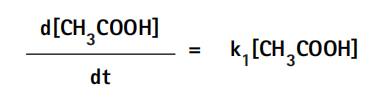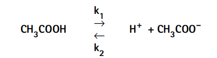 式中,k1為醋酸分子解離生成醋酸根離子和氫離子的速率常數,k2為醋酸根離子和氫離子結合生成醋酸分子的速率常數。醋酸的解離速率d[CH3COOH]/dt取決于解離速率常數(k1)和醋酸[CH3COOH]的濃度,可表示為: