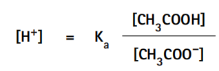 其中,氫離子濃度用平衡常數、醋酸分子以及醋酸根離子的濃度表示。