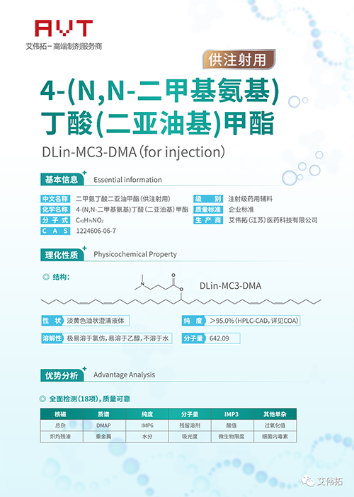 艾偉拓注射級DLIN-MC3-DMA**檢測18項,質(zhì)量可靠,GMP條件下生產(chǎn),高純度,雜質(zhì)可控,可接受定制化服務,歡迎來詢!
