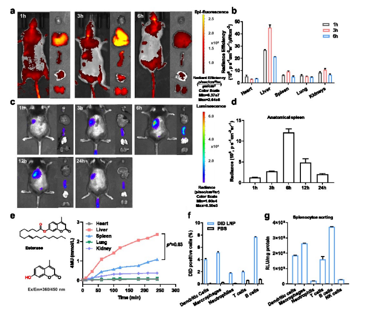 圖2. AMB-POC18 LNPs的生物分布和脾臟特異性mRNA轉染